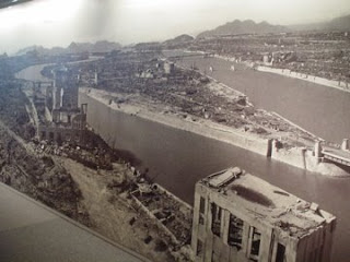 Foi nesta zona que a bomba explodiu. Para quem nao sabe, tanto esta como a bomba em Nagasaki nunca tocaram o chao. Neste caso, a bomba explodiu a 600 metros acima do solo e trouxe, como toda a gente sabe, uma destruicao avassaladora...