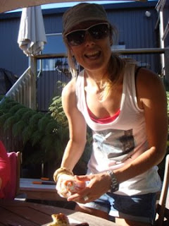 Mas a coisa lá se resolveu e a degustação do jantar kiwi lá tomou lugar! À mesa, a Adelle, a mãe, depois o padrasto...